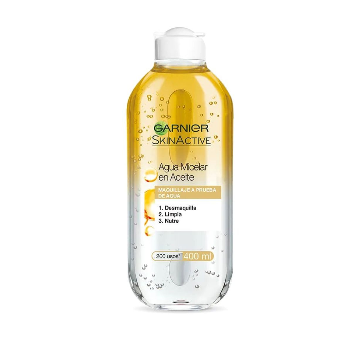 El Agua Micelar Bifasica de Garnier con Aceite de Argán: Limpia, desmaquilla y nutre tu rostro incluyendo labios y ojos. Es perfecta para eliminar el maquillaje a prueba de agua.
