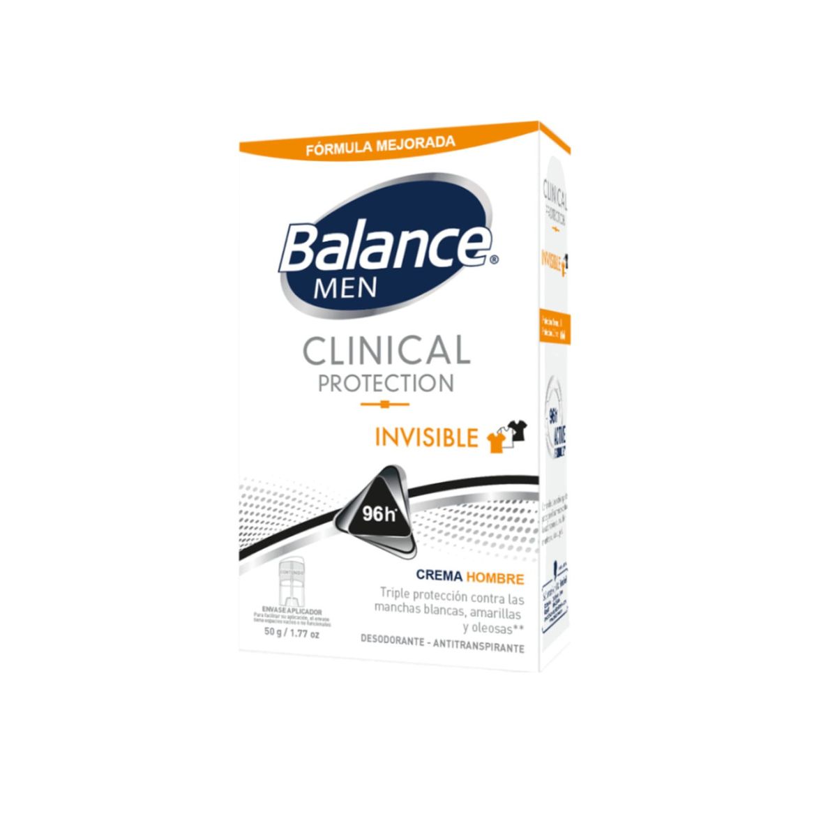 El desodorante Balance Clinical Invisible protege eficazmente con Active Technology hasta por 96 horas*, mientras cuida la ropa de las manchas blancas, amarillas y oleosas*